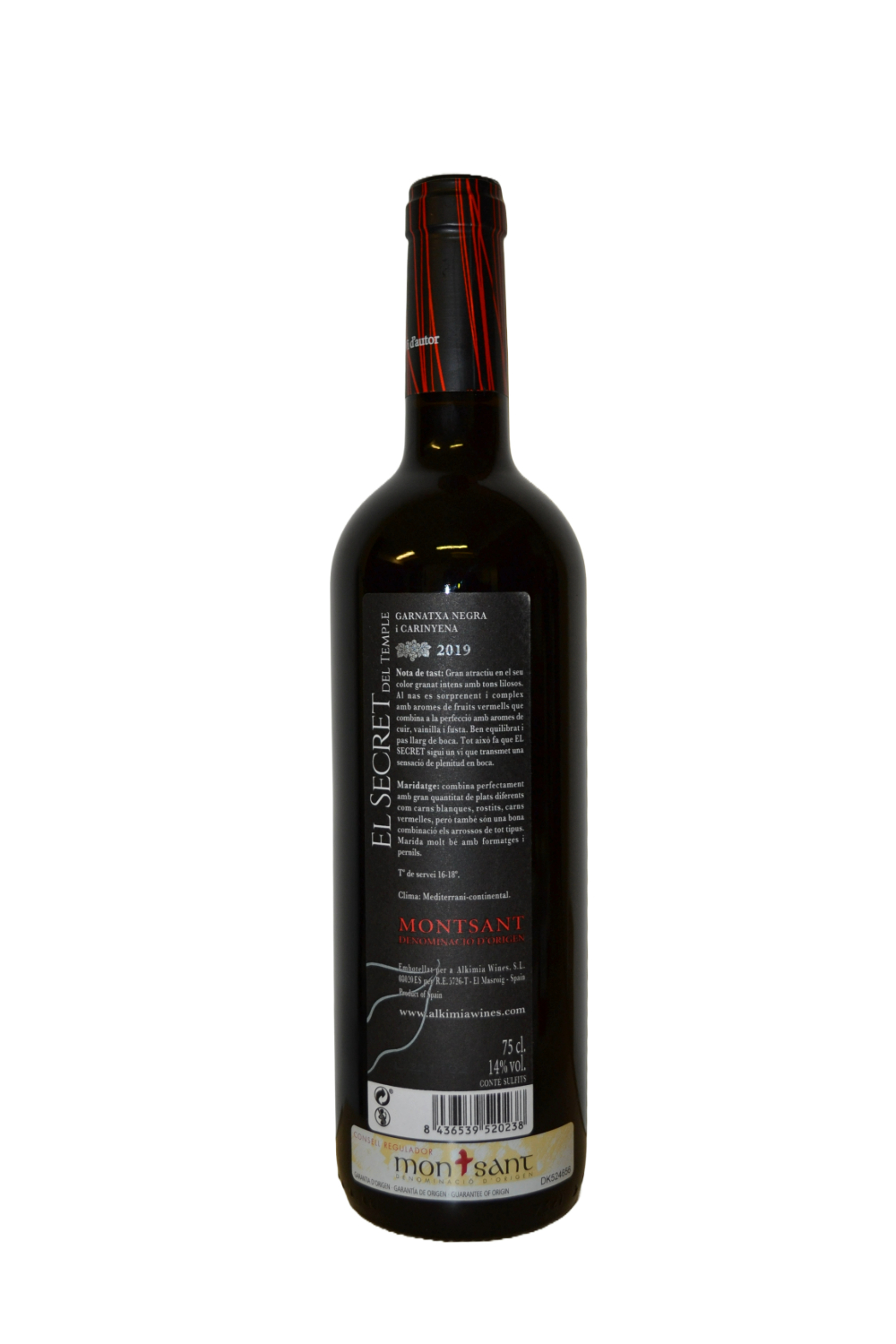 El Secret del Temple Selecció ( El Secreto del Templo – Selección), es un Vino tinto ( Garnacha tinta, Cariñena y Sirah) de gran atractivo en su color rojo picota intenso.